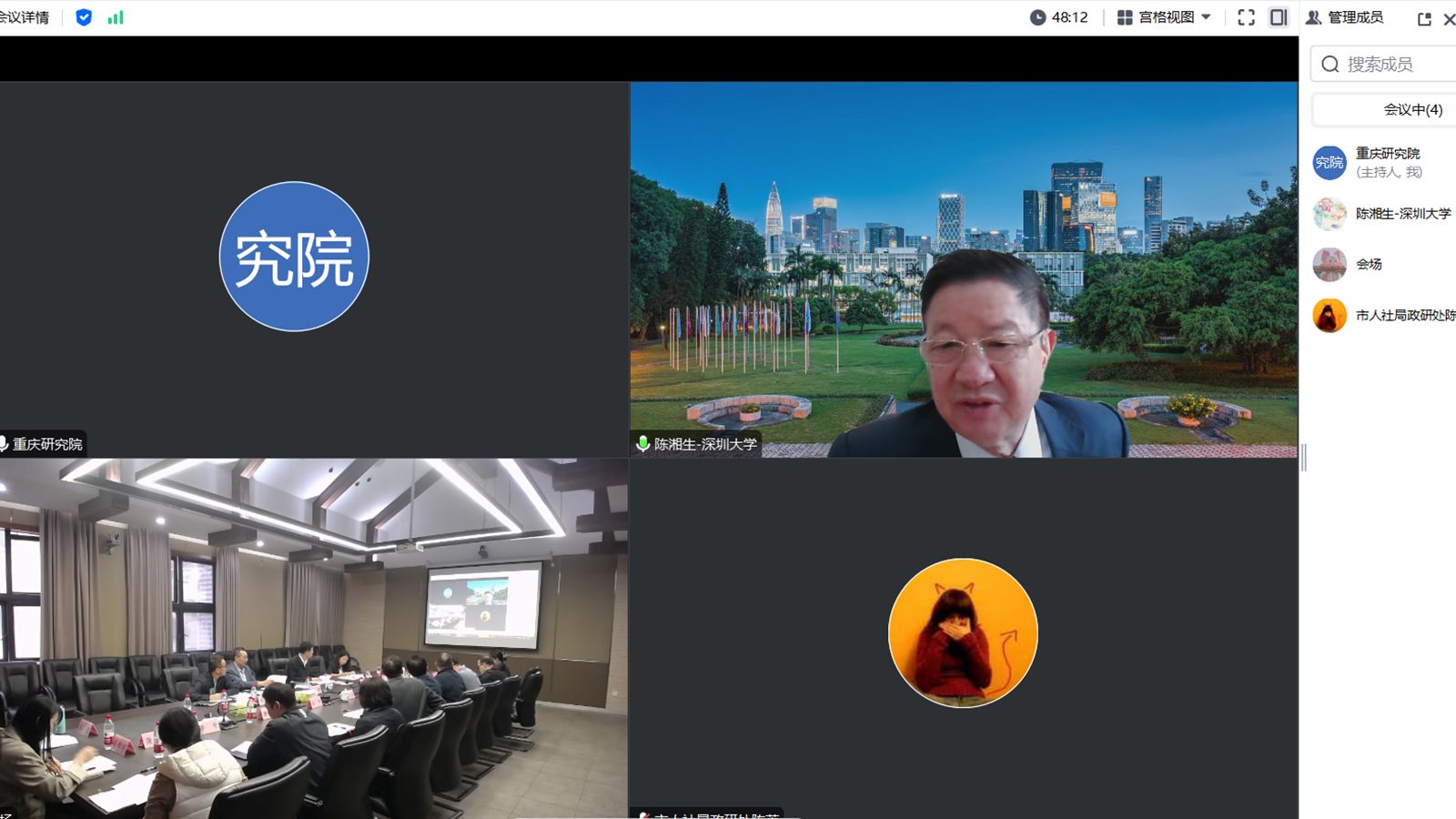 2024年11月4日,中国工程科技发展战略重庆研究院(以下简称“重庆研究院”)战略咨询项目“重庆现代化产业体系建设的工程师队伍开发战略研究”举行开题报告会。中国工程院院士、深圳地铁集团有限公司总工程师陈湘生线上出席。会议由重庆大学社科处处长、期刊社社长兼总编辑、工程科教战略研究中心主任、重庆研究院秘书长袁文全教授主持。