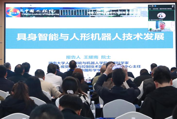 2025年10月27日上午,“重庆具身智能新质生产力技术路径与战略布局研究”院士讲坛活动在重庆国际会议展览中心举行。中国工程院院士、机器人技术与智能控制领域权威专家王耀南教授在线发表《具身智能与人形机器人技术发展》主题报告。